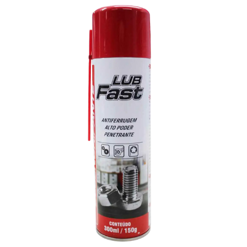 O ÓLEO DESENGRIPANTE LUB FAST 300ML atua como lubrificante e penetrante, ideal para soltar parafusos, porcas e peças enferrujadas. Também ajuda a eliminar ruídos e proteger contra novos pontos de oxidação